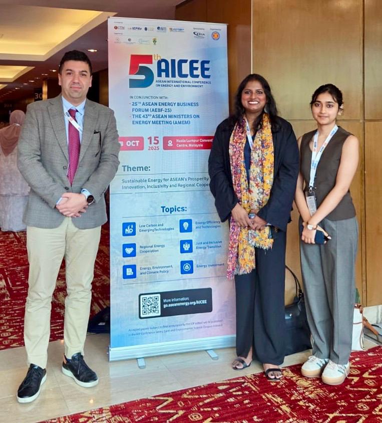 On 15 October 2025, Senior Research Fellow Mohammad Hazrati, Research Fellow Nivedita S, and Research Associate Rasmika Ghosh from the NUS Centre for International Law, Energy Law and Policy Team, participated in the 5th ASEAN International Conference on Energy and Environment (AICEE), Kuala Lumpur, Malaysia.