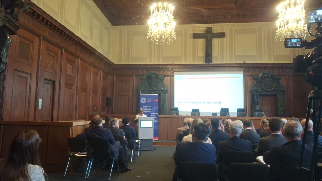 • Opening remarks by Christoph Safferling (Director, International Nuremberg Principles Academy), alongside legal dignitaries from Germany and the International Criminal Court.