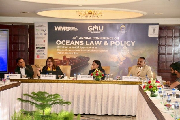 The conference revolved around the theme ‘Developing World Approaches to Ocean Governance: Perspectives from the Indian Ocean Rim’. It was jointly organized by Gujarat Maritime University, World Maritime University (WMU) Sasakawa Global Ocean Institute, and US Naval War College Stockton Center for International Law, and co-sponsored by 12 other institutions, one of which was the NUS Centre for International Law. The dialogues and deliberations were divided into the following sessions and panels: