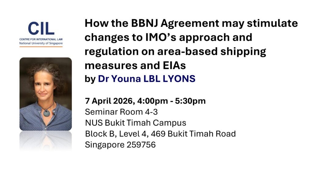 Abstract: The entry into force of the Agreement under the United Nations Convention on the Law of the Sea on the Conservation and Sustainable Use of Marine Biological Diversity of Areas beyond National Jurisdiction (BBNJ Agreement) introduces new procedural and substantive obligations regarding area-based management tools (ABMTs) and environmental impact assessments (EIAs) with respect to activities in areas beyond national jurisdiction (ABNJ) or that may have effects in ABNJ. While the Agreement explicitly preserves the mandates of competent relationship with relevant legal instruments and frameworks and relevant global, regional, subregional and sectoral bodies (IFBs), including the IMO, it also sets out procedural and substantive standards that may influence the manner in which these IFBs discharge their responsibilities under UNCLOS.